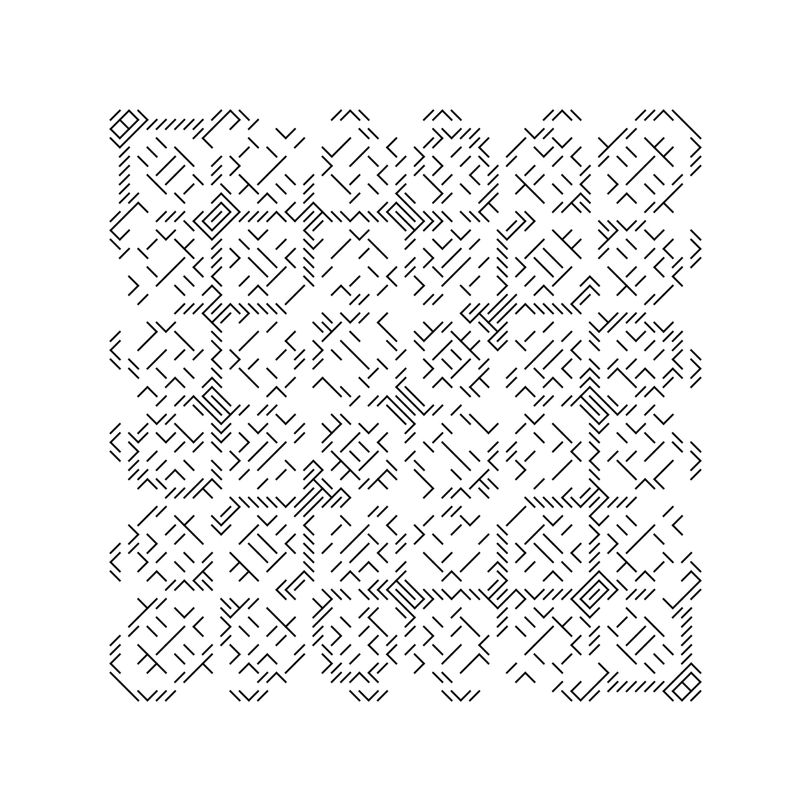 Deux ans après les CryptoPunks, Larva Labs lance les Autoglyphs, un projet d’art génératif « on-chain », dont l’intégralité des données est stockée sur le NFT. Chaque œuvre de la série consiste en une composition abstraite différente à partir de symboles simples tels que + – |, / \, # et O, et peut-être reproduite de différentes manières, jusqu’au dessin mural, à la manière des Wall-Drawings de Sol Lewitt. La faible quantité d’information que peut contenir le NFT, servant ici de support au protocole de l’œuvre, invite Matt Hall et John Watkinson à renouer avec les contraintes des pionniers de l’art numérique, comme Ken Knowlton et Michael Noll, auquel ce projet rend également hommage.
