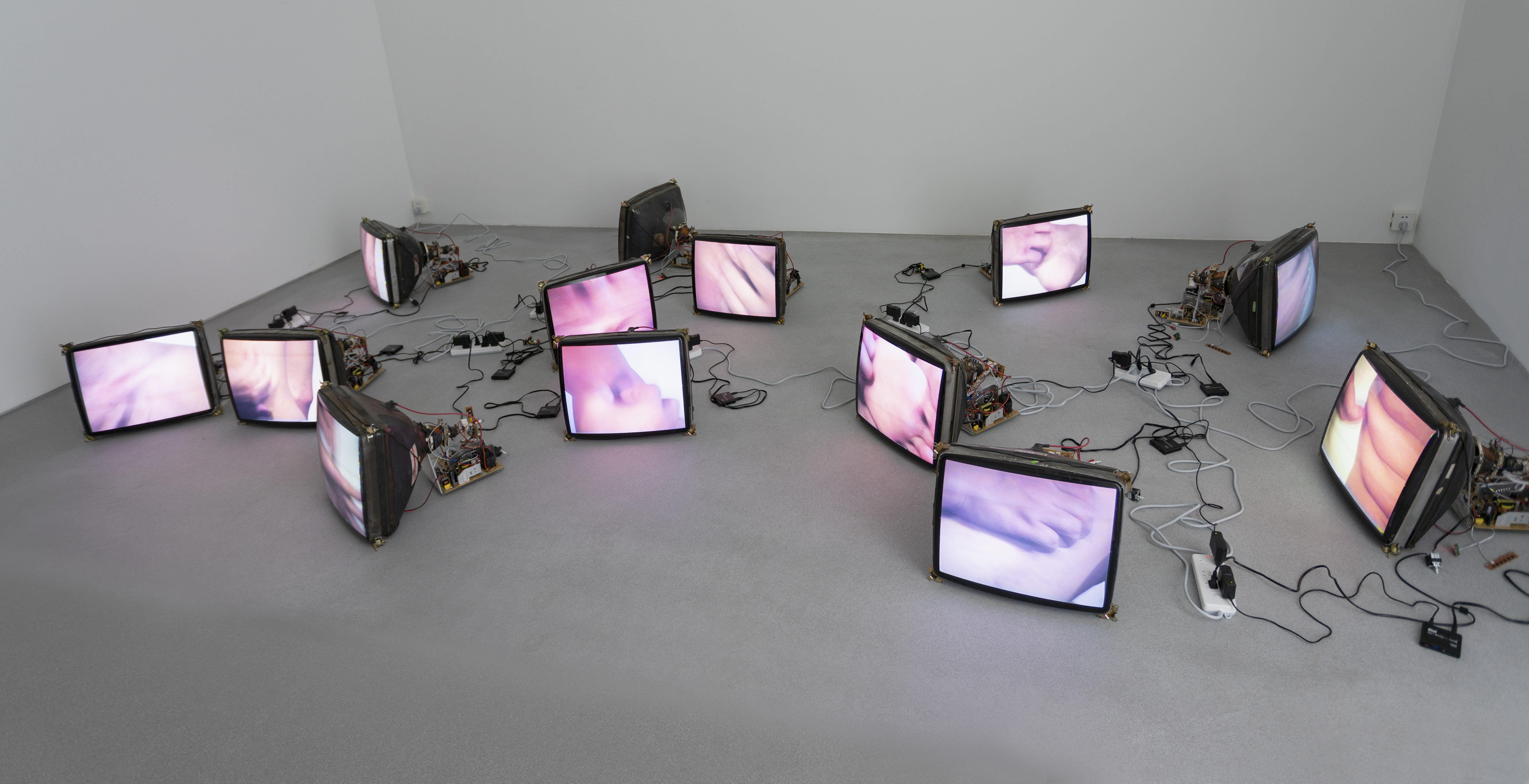 C’est dans ce contexte que Zhang Peili a présenté pour la première fois son installation vidéo Uncertain Pleasure (Les maladies superficielles) (1996), composée de seize canaux vidéo de 30 minutes montrant en gros plan les mains d’une personne grattant différentes parties de son corps. Constituée d’un ensemble de moniteurs disposés au sol, l’installation capture cet acte répétitif et intime sous plusieurs angles, plongeant les spectateurs dans une expérience focalisée. Cette immersion sensorielle suscite une réponse empathique, incitant les spectateurs à ressentir eux-mêmes cette démangeaison. Dans le même temps, elle suscite également un certain malaise. Invoquant les thèmes du voyeurisme et de la surveillance, elle transforme un acte privé en spectacle public.